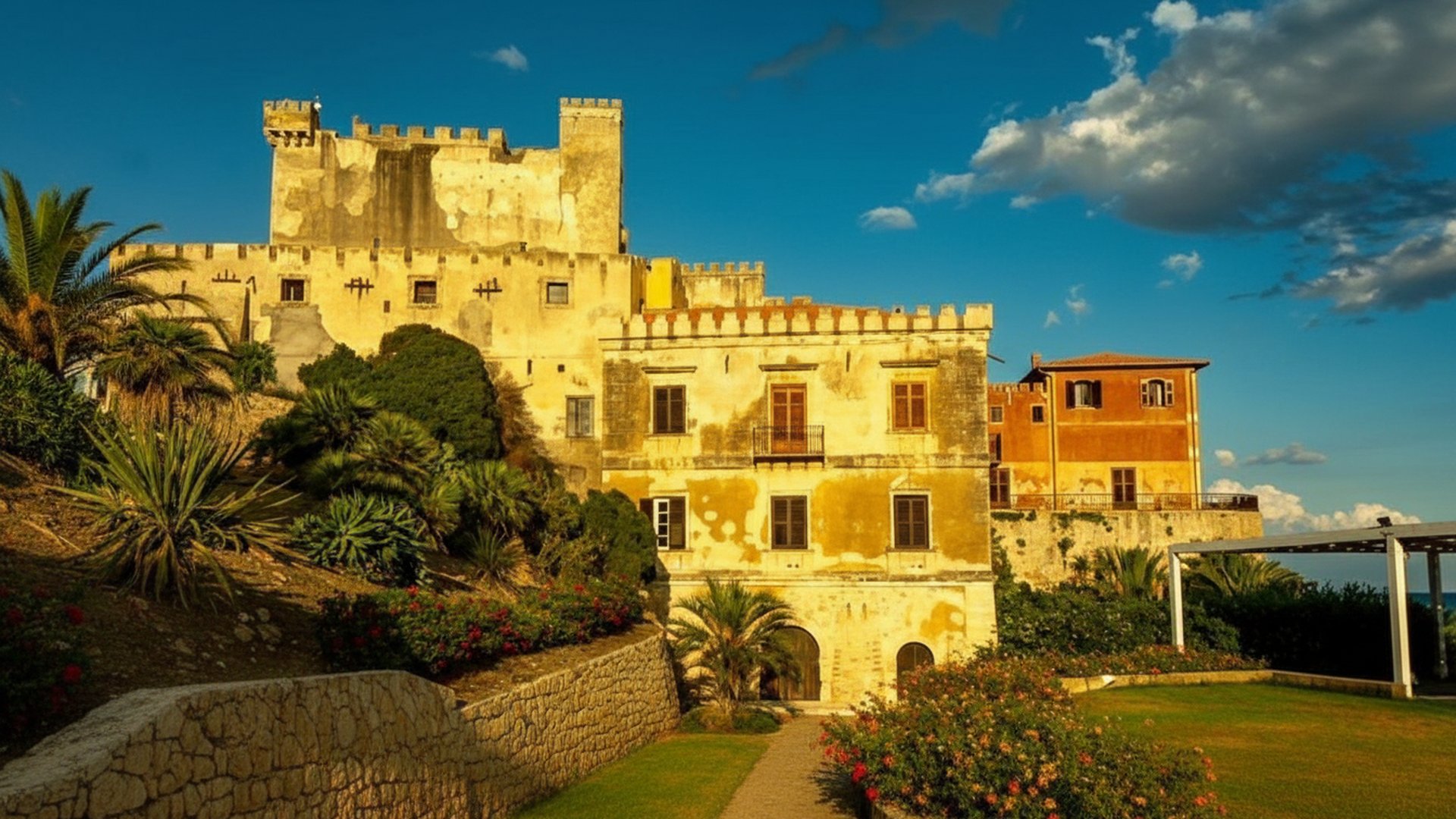 Il Castello di Falconara — fortezza del XIV secolo trasformata in elegante dimora — si affaccia su un tratto di costa siciliana, con torre, giardini mediterranei e piscina naturale. Un luogo perfetto per chi cerca fascino antico, mare e relax in un’atmosfera da favola.